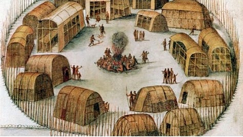 *These and most images of the indigenous people of Virginia in books or on the internet are based on watercolors of Algonquian villages done by a guy name John White who was governor of the ‘Lost Colony’ on Roanoke Island. I’m hoping to get a bonus post up about the images for Monacan towns.
